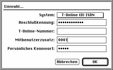 MacOS 7.5.2 mit Open Transport 1.0 läßt sich leider mit T-Online