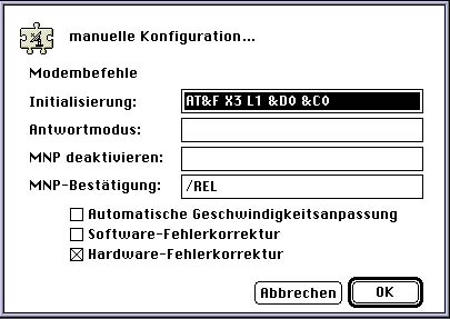 PC Cards (Powerbook) Initstrings für V.42 Fehlerkorrektur