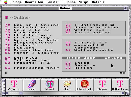 | Ablage | Bearbeiten | Fenster | T-Online | Befehle | |||||||||||||||||||||||||||||||||||||||||||||||||||||||||||||||||||||||||||||||||||||||||||||||||||||||||||||||||||||||||||||||||||||||||||||||||||||||||||||||||||||||||||||||||||||||||||||||||||