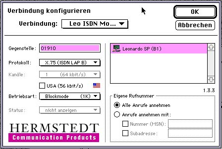 der Klapp-Menüs zu treffen. "Verbindung": Leo-ISDN-Modul